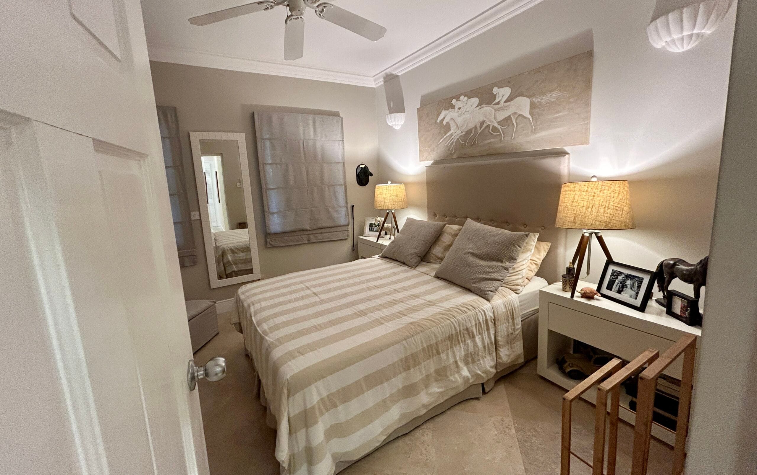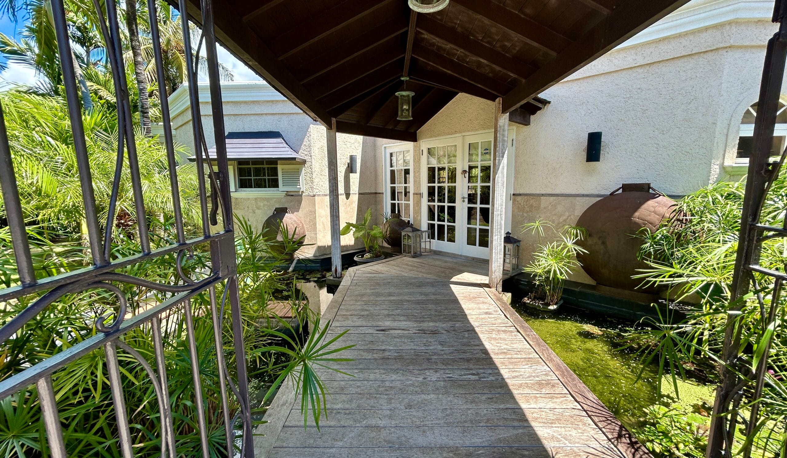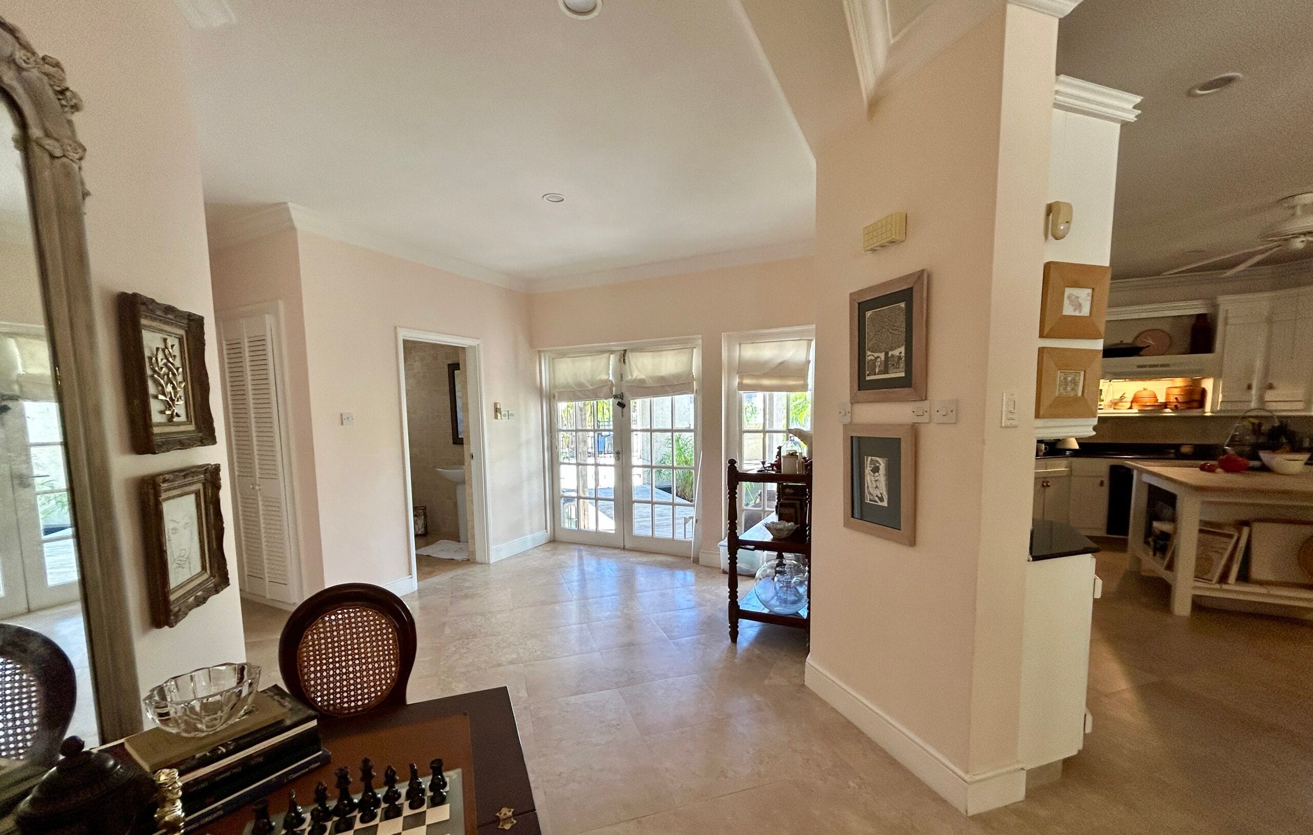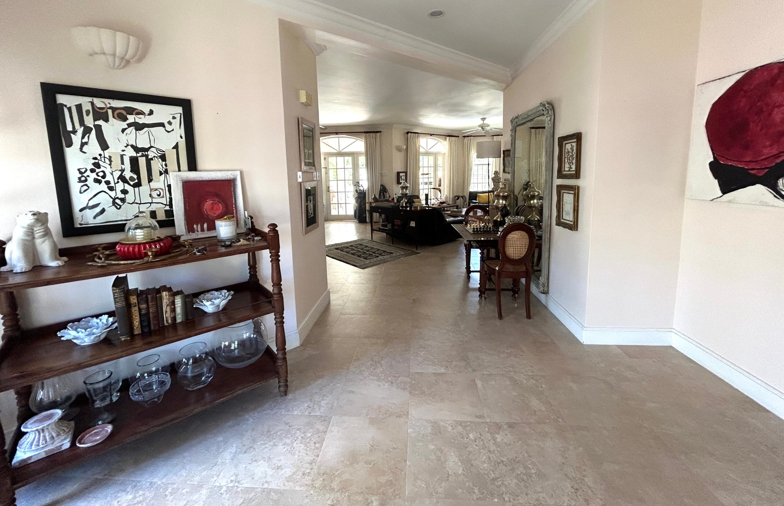 Located on the first tee box of the Barbados Golf Club (Durants), this elegant bungalow is arguably the best positioned home on the golf course. The location offers cooling shade, a spacious garden, beautiful neighbourhood, convenience to the amenities offered by the golf club including restaurant, events and of course golf. There is even room to house and store your own personal golf cart so you can get your round of golf in efficiently.